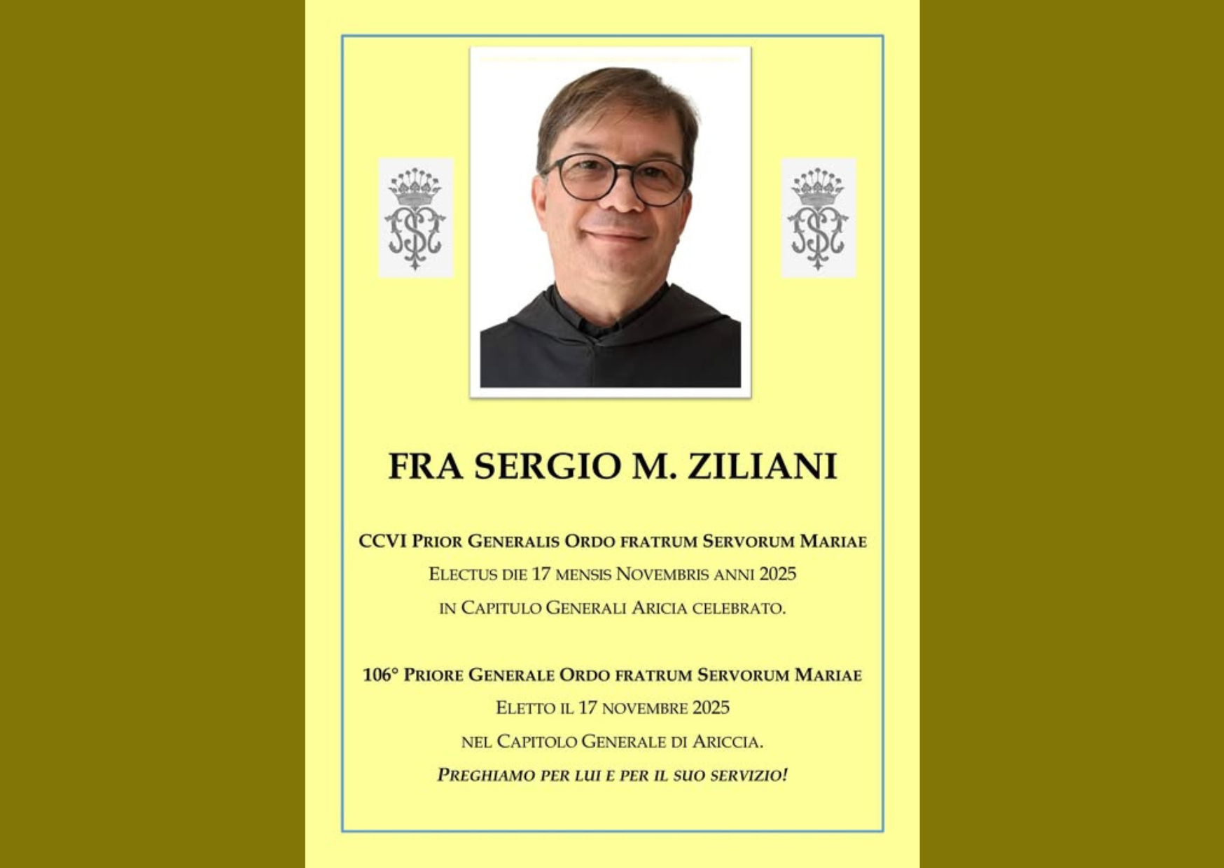 Siamo lieti di condividere con tutti voi la bella notizia che p. Sergio M. Ziliani, studente della nostra Facoltà, è stato eletto Priore Generale dell’Ordine dei Frati Servi di Maria.