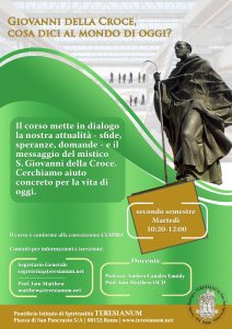 Sono questi solo alcuni degli spunti di una “spiritualità dell’immagine” che rimane un orizzonte immenso di esplorazione per la nostra riflessione teologica e per la nostra chiamata alla santità, orizzonte da contemplare – come tenteremo di fare nel susseguirsi delle giornate e dei relatori – secondo variegate angolature: quella dell’integrazione dell’immaginazione in una teologia sapienziale; quella della pastorale della carità e dell’evangelizzazione; quella della storia dell’arte (è incluso nel programma anche un godibilissimo spettacolo teatrale sull’estasi di Teresa del Bernini) e della filosofia; nonché infine quella carmelitana: «La memoria delle immagini non potrà non far progredire l’anima, perché è associata all’amore di chi è raffigurato», afferma il santo poeta Giovanni della Croce (3Subída 15,2), riecheggiando le parole dello stesso Gesù a Teresa d’Avila, in riferimento a certe belle immagini da custodire: «non lasciare nulla di ciò che può svegliarti all’amore!» (Relación 30). Ci permettiamo di ripetere questo stesso invito a tutti coloro che vorranno partecipare alla nostra 67° Settimana di Spiritualità!